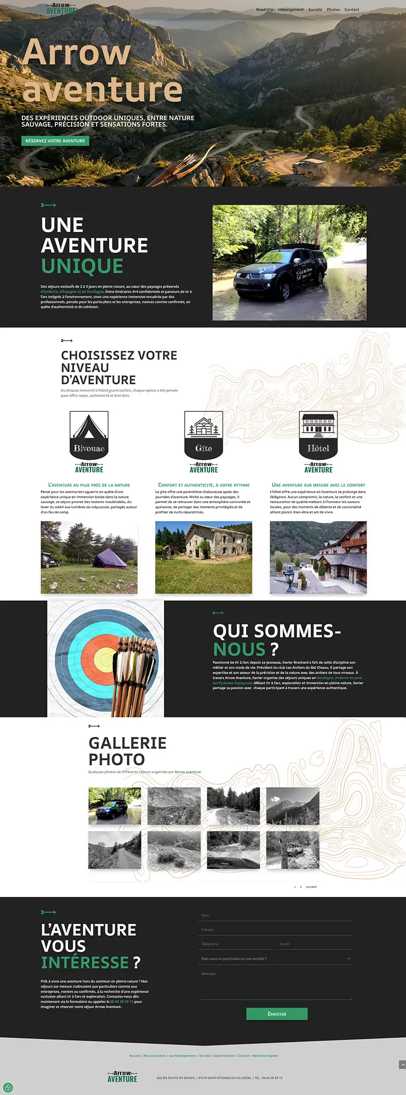 Création du site internet d’Arrow aventure, spécialiste de l’organisation de séjours mêlant tir à l’arc et 4×4 en Espagne et en France.